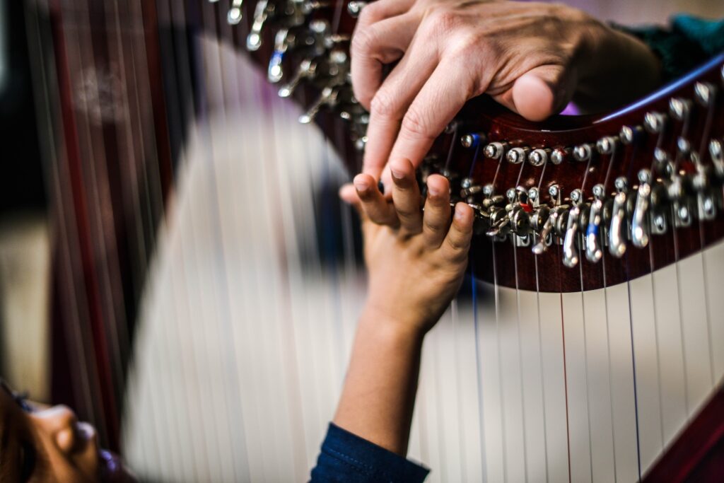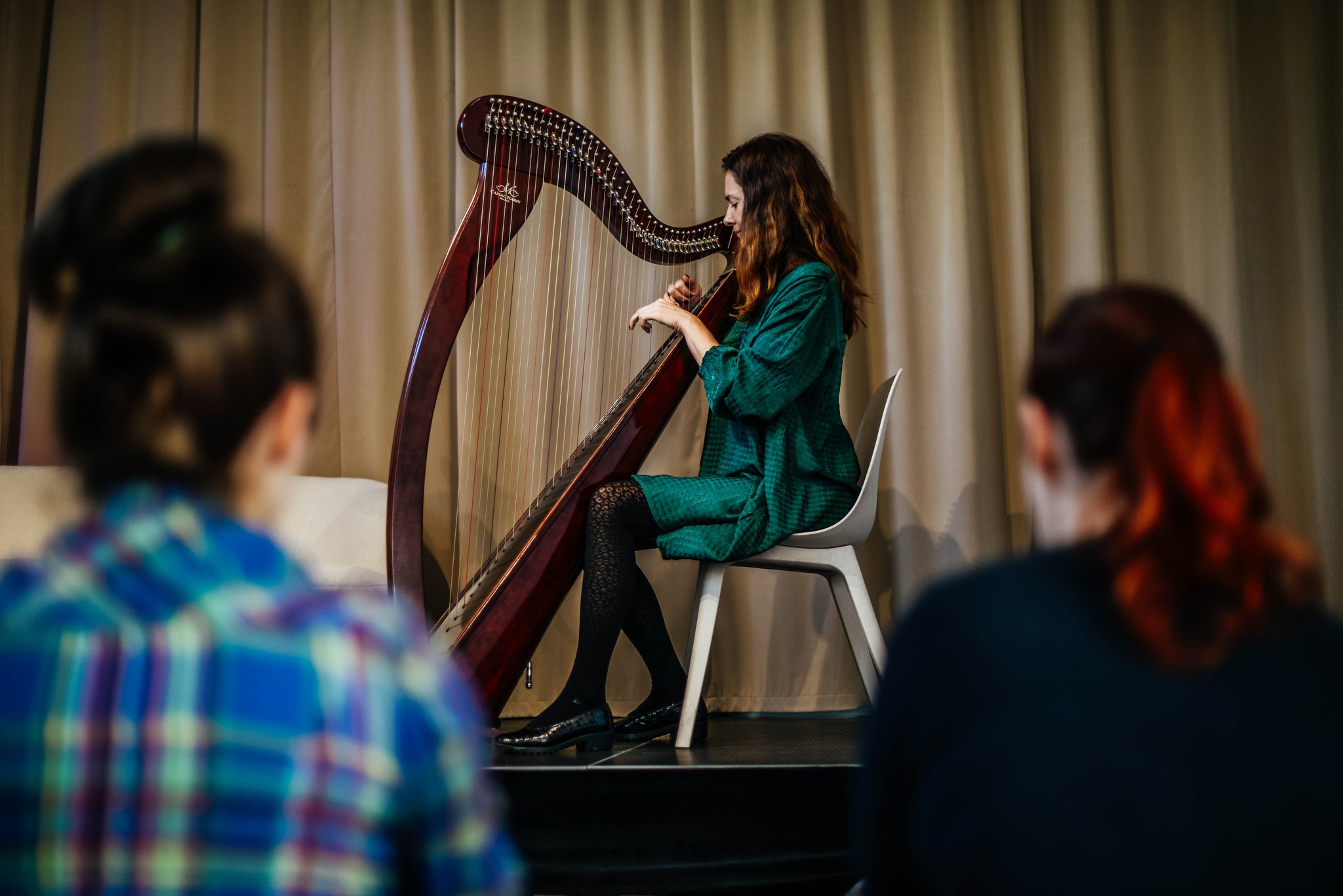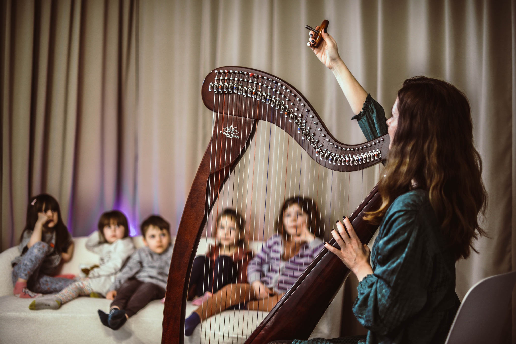 Spotkanie obejmuje również prezentację możliwości harfy, krótki quiz oraz kilka słów o pochodzeniu instrumentu.