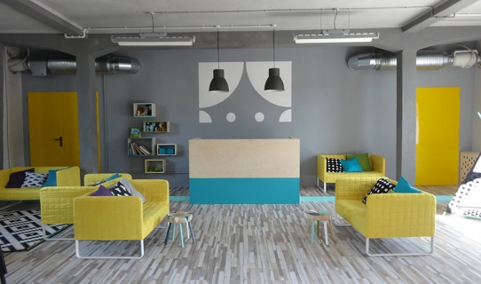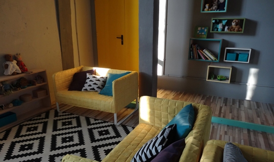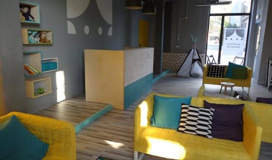 Sala sąsiaduje z sympatycznym, nowoczesnym foyer (50 m kw.), urządzonym pod kątem małych gości Teatru Niewielkiego, ale świetnie nadającym się również dla osób doroslych.