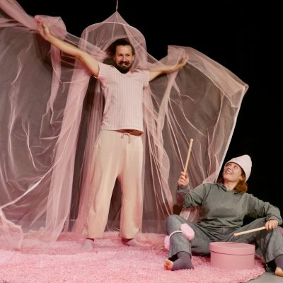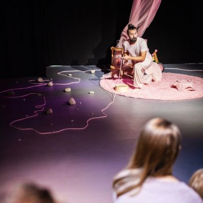 Spektakl WYSPA to z jednej strony pogodna historia o Różowym, który mieszka sobie sam na różowej wyspie i pije różowe mleko, jeździ na różowym rowerku i z braku innych opcji przyjaźni się… z różowym kłębkiem wełny. Ale gdzieś głębiej snuje się opowieść o samotności i tęsknocie. A także o granicach tego, co „moje” i „nie oddam”, i o strachu przed tym, żeby się otworzyć na innych i podzielić. Bo gdy pozwalamy się komuś do nas zbliżyć, to otwieramy się nie tylko na radość, ale i na smutek.
